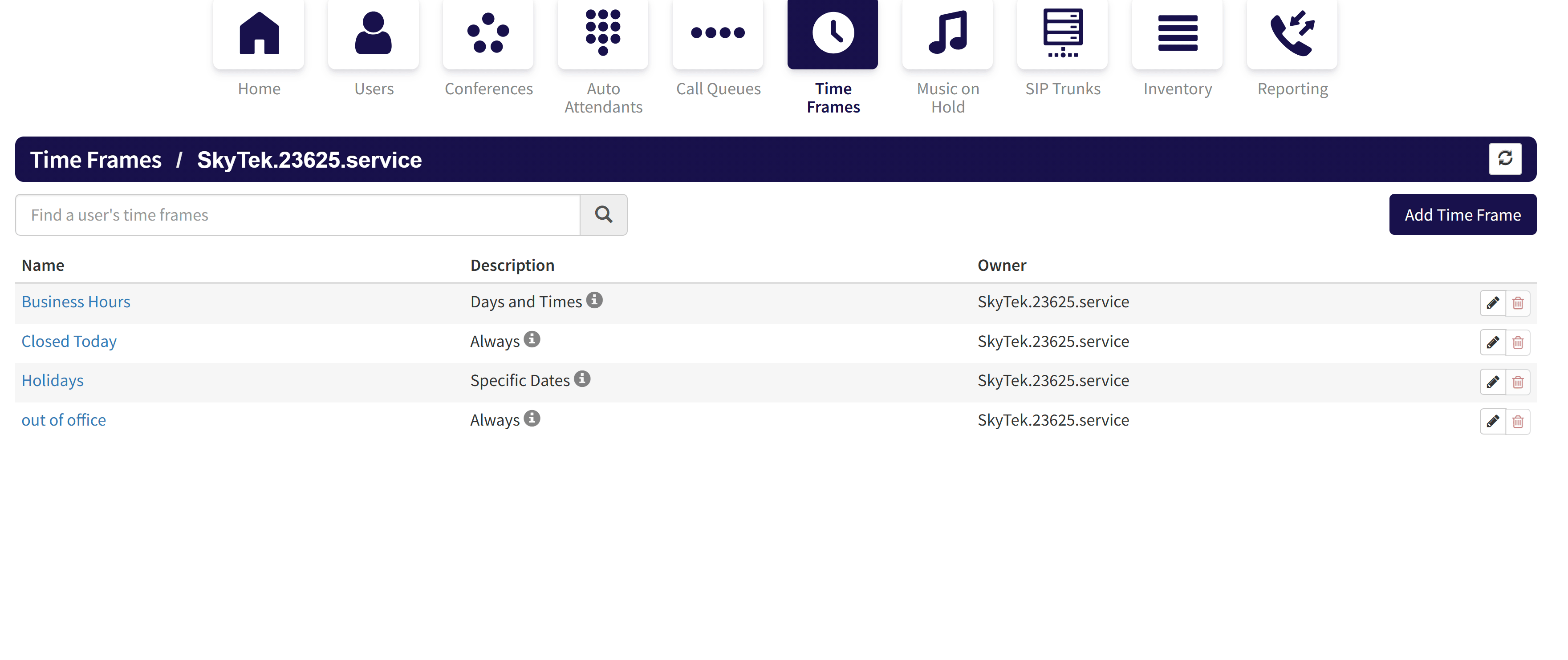 You can easily Create, Modify, and Update. Business hours, Holidays, etc..